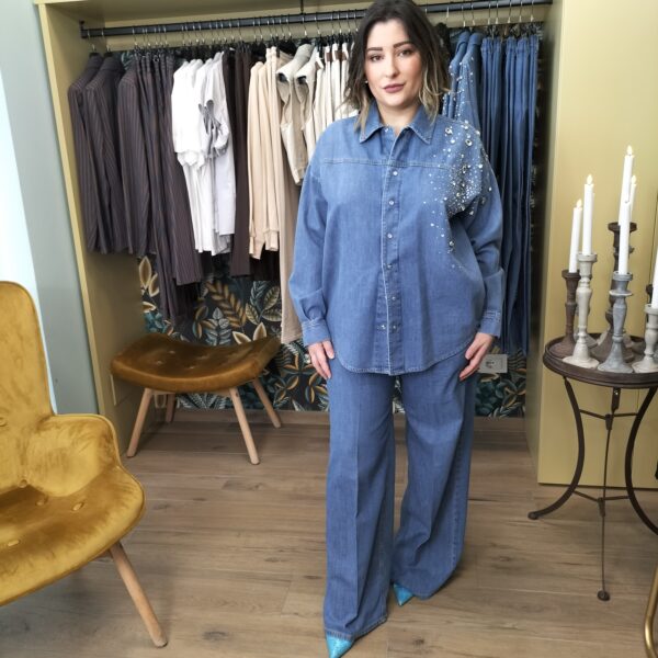 Camicia over jeans strass, 100% cotone